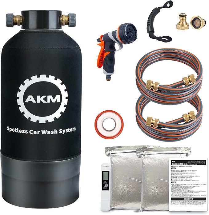 AKM 純水器 洗車用 10L容量 真鍮制ネジ口金 ホース2本付属 散水ノズル タンクカバー TDSメーター イオン交換樹脂充填済み