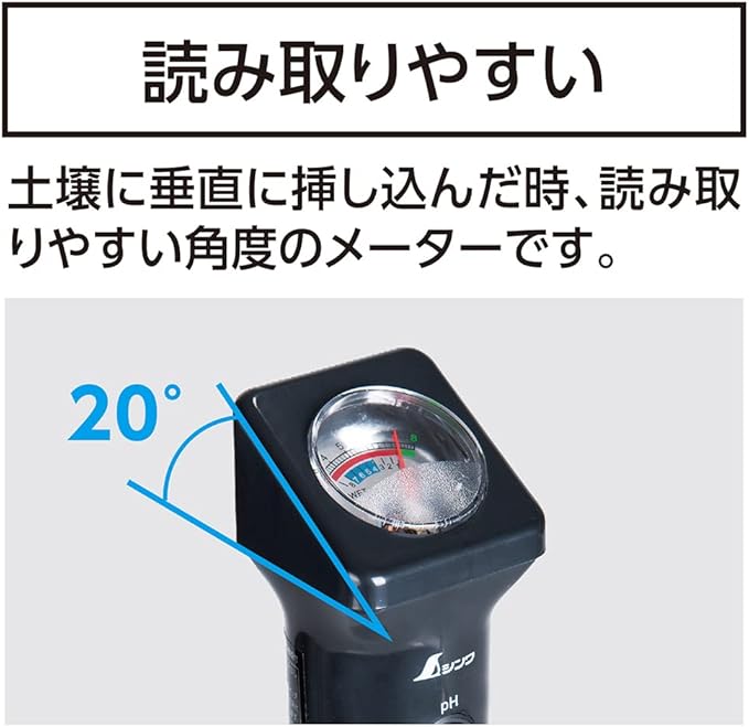 土壌に垂直に挿し込んだ時、読み取り安い角度のメーターです。