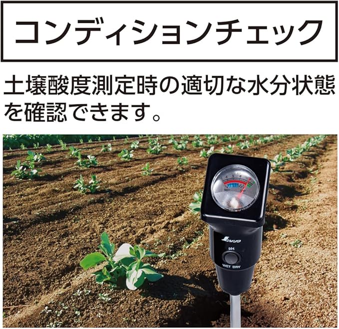 土壌酸度測定時の適切な水分状態を確認できるコンディションチェック機能付です。