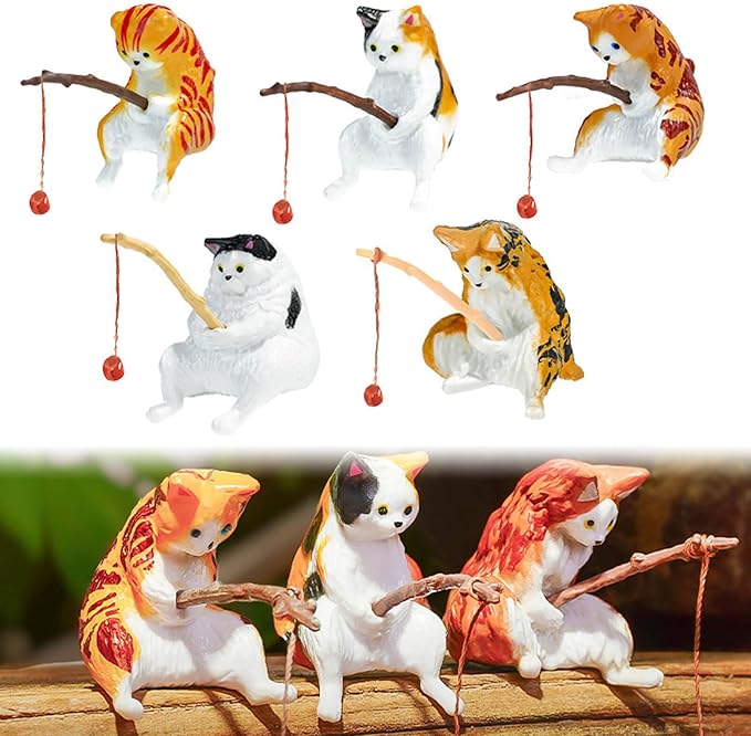 水槽 アクアリウム 釣り猫 置物 猫フィギュア 5個セット ミニ 猫釣り 癒し 水槽用アクセサリー クラフト飾り 盆栽 ガーデン マイクロ風景飾り オブジェ 情景小物 オーナメント インテリアホーム 樹脂 DIY飾り物 贈り物 フィギュア 装飾