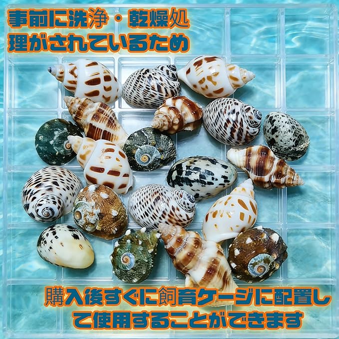 - 豊富な数量セット:1パックに20個が含まれ、複数のヤドカリ殻の装飾や水族館内のデザインレイアウトに十分な数量を提供。経済的かつ実用的なセット構成です。