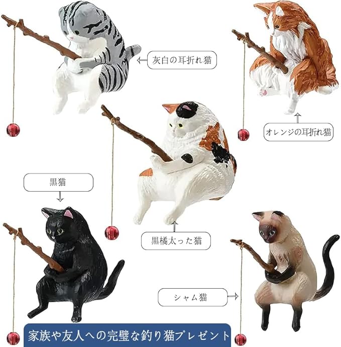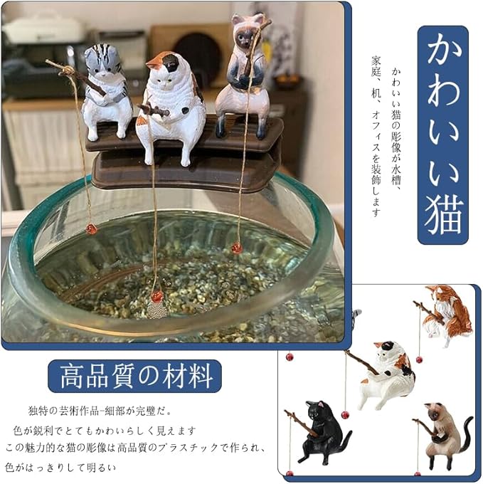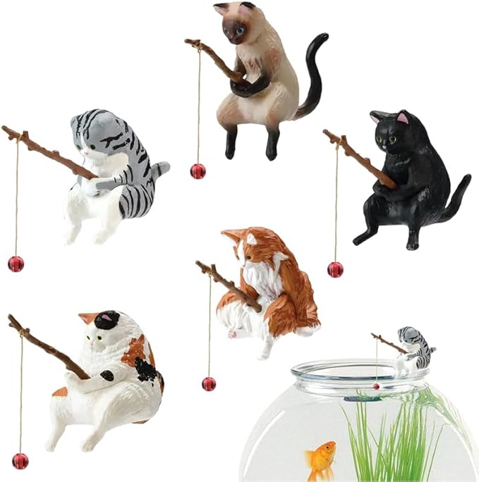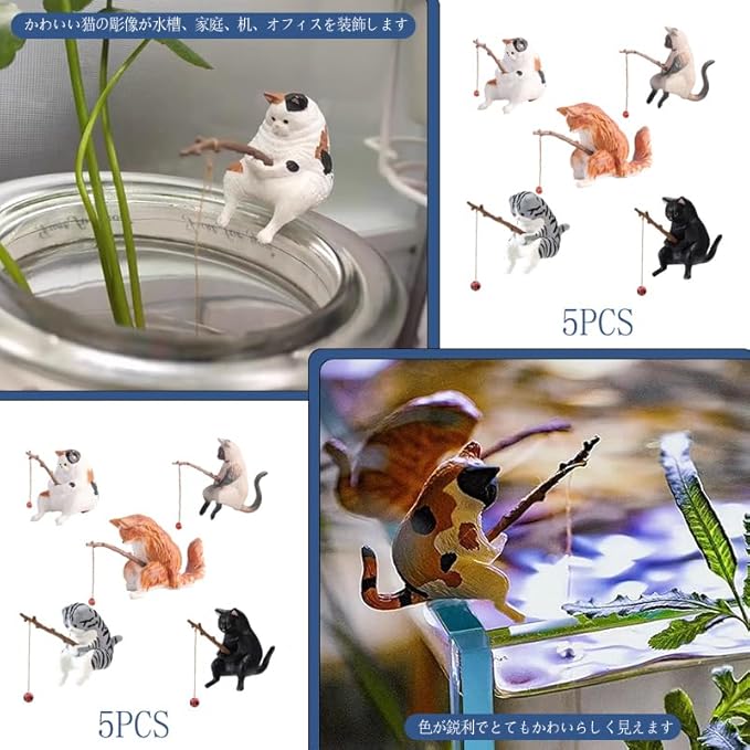 5個 釣り猫 置物 ミニ猫の像 水槽 オーナメント 子猫釣り置物 水槽造景 樹脂飾り 水槽用飾り 観賞 装飾品 水槽用アクセサリー 店舗飾り オブジェ 雰囲気を作る 家庭用 アクアリウム 用