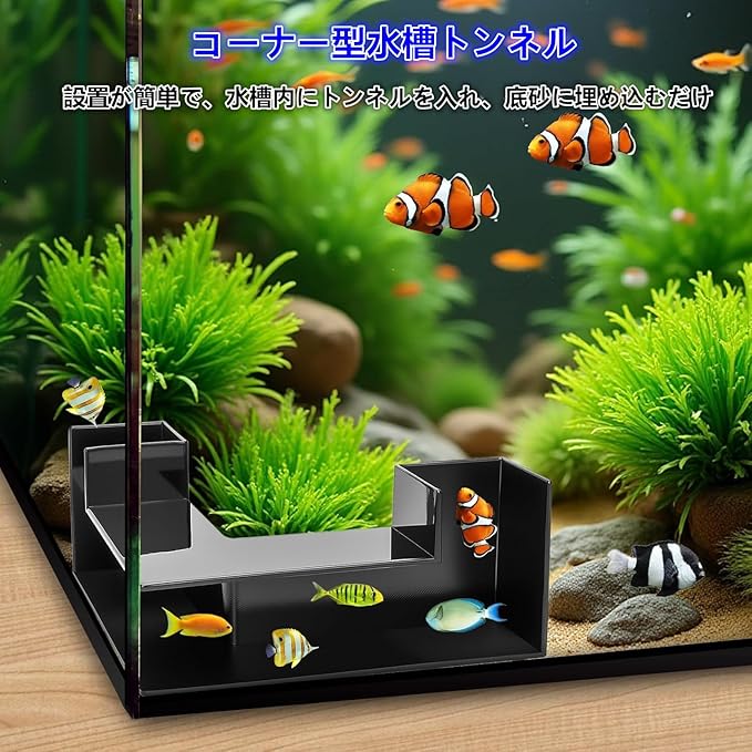 水槽トンネル 隠れ家 コーナー型 水槽洞窟 アクアリウム装飾アクセサリー おしゃれ エビ 魚 金魚 カニ ベタの洞窟 遊び場 休憩所 プラスチック製 12.5 12.5 5.5cm