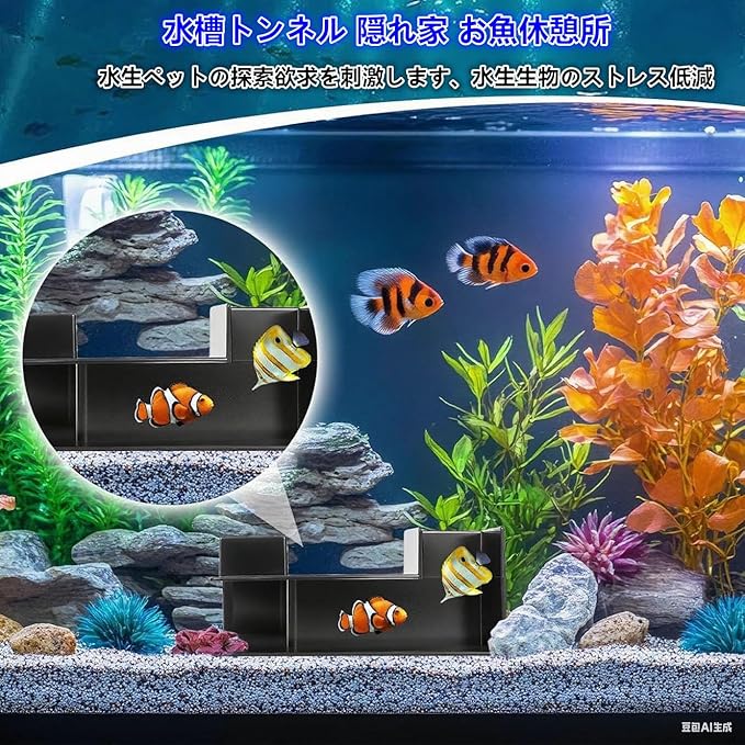 【理想的な隠れ家】水槽用洞窟は魚、エビ、その他小型水生生物に安全で快適な隠れ場所を提供し、それらのストレスを効果的に軽減します。特に繁殖期や休息時に適しています。トンネルはペットの避難所であると同時に、水槽内の独特な装飾品でもあり、視覚的な魅力を高めます。