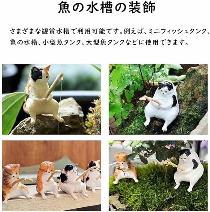 アクアリウム 水槽 5点セット 釣り猫 オーナメント 猫 水槽造景 オーナメント 水族館の装飾 インテリア ミニ猫像 雑貨 樹脂 水槽アクセサリー