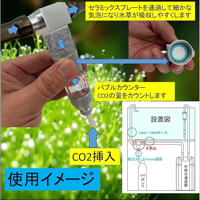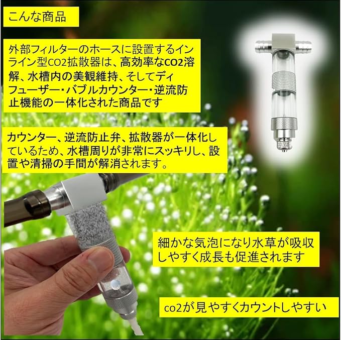水槽用 CO2 拡散器 インライン型 ディフューザー インライン型ディフューザー バブルカウンター 外部 強制添加 外部強制添加 CO2拡散器