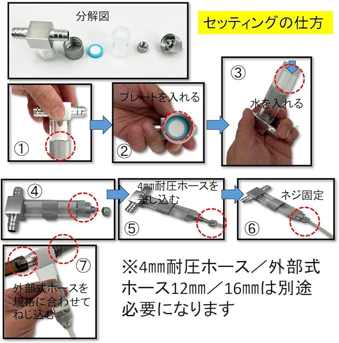 【製品仕様】 対応ホース径:ホース規格の12㎜、16㎜がありますのでそれに合わせてお選びください。CO2のチューブサイズはどちらも4㎜規格に適合します、本体サイズ:長さ13㎝、太さ2.5mm。※初めて使用する際は、プレートを1日程度水に浸して馴染ませてください。