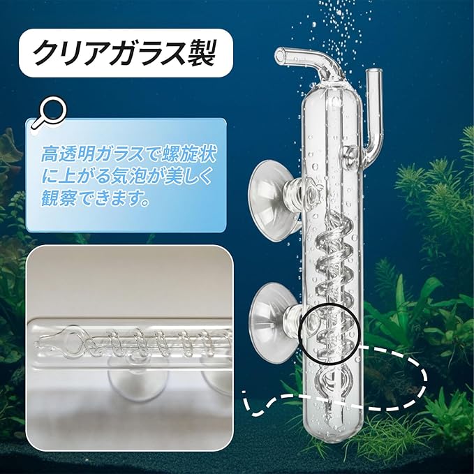 co2 ディフューザー CO2拡散器 螺旋バブルカウンター 水草用クリスタルディフューザー ガラス製 吸盤付き