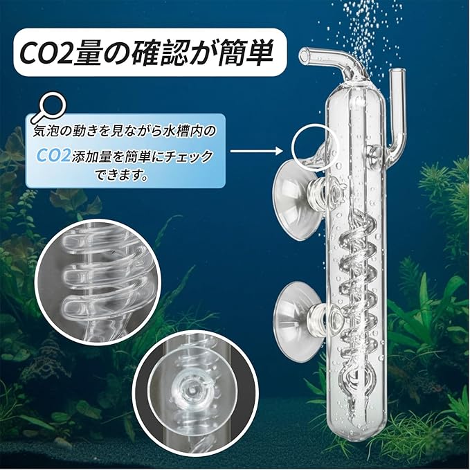 【CO2量の確認が簡単】気泡の動きを見ながら水槽内のCO2添加量を簡単にチェックできます。