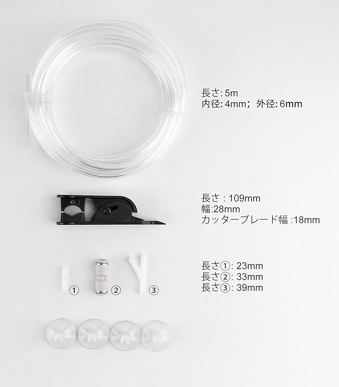 クレシー TCPU-5 アクアリウム用 CO2耐圧チューブ5ⅿ(チューブカッター付き) CO2ディフューザー用チューブ