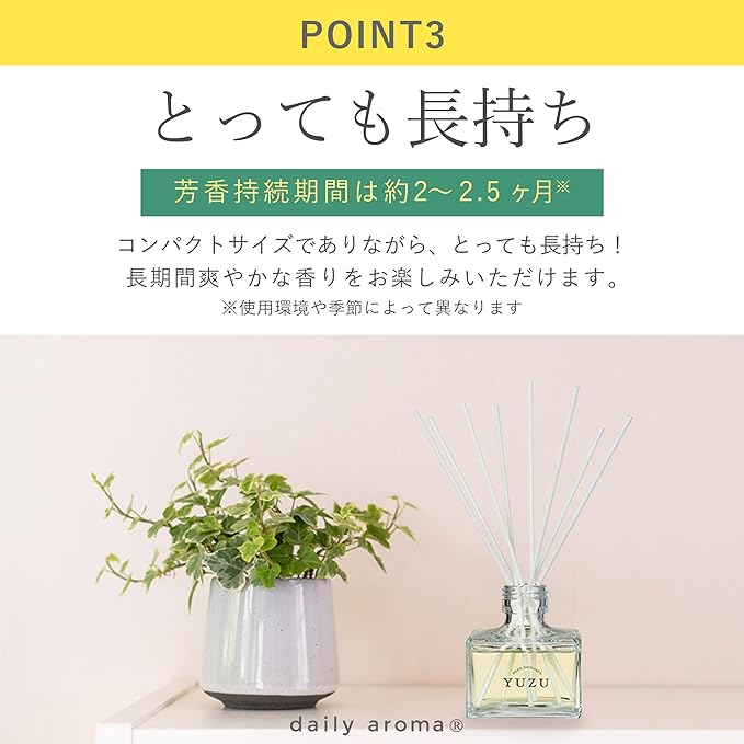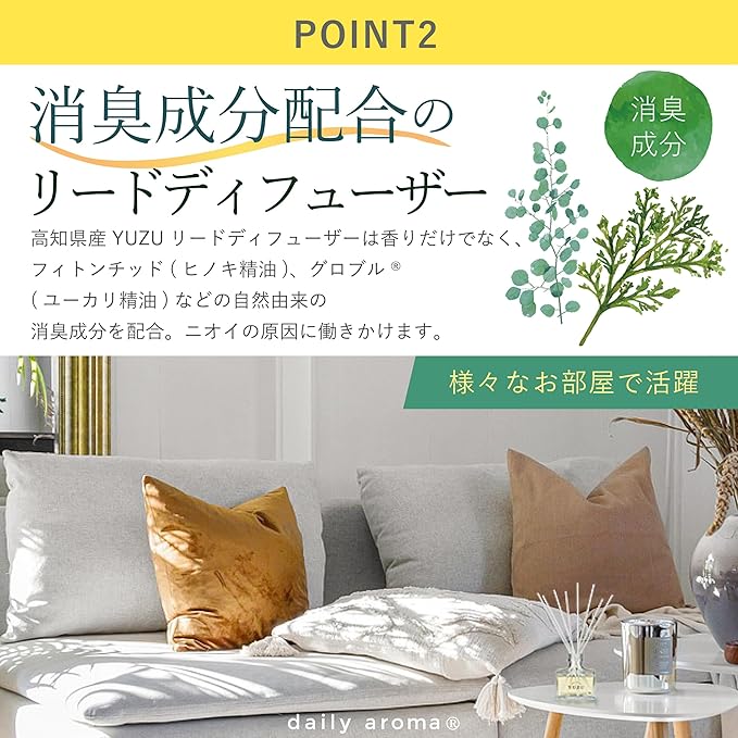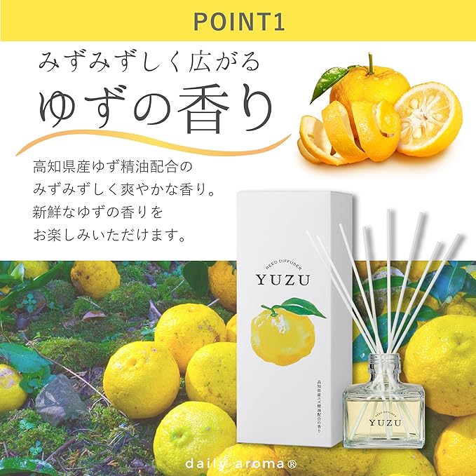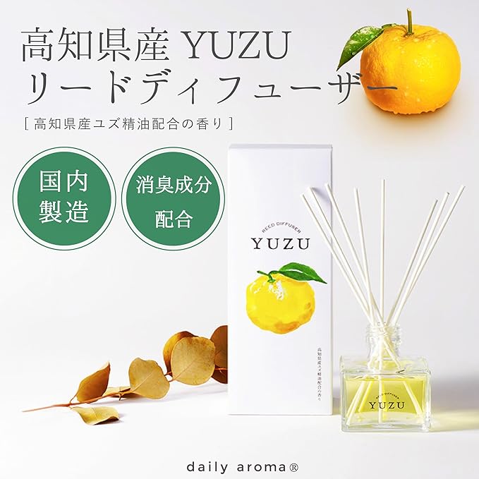 デイリーアロマ 高知県YUZU 消臭リードディフューザー 120mL 柚子の香り | デイリーアロマジャパン 日本製 ユズ ゆず 高知県産ゆず精油配合 ギフト プレゼント 芳香剤 消臭剤 ルームフレグランス 消臭 除菌 インテリア