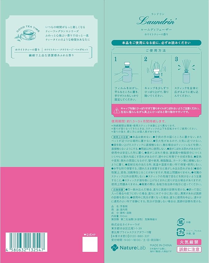 Laundrin'(ランドリン) Laundrin ルームディフューザー ホワイトティーの香り 100ml