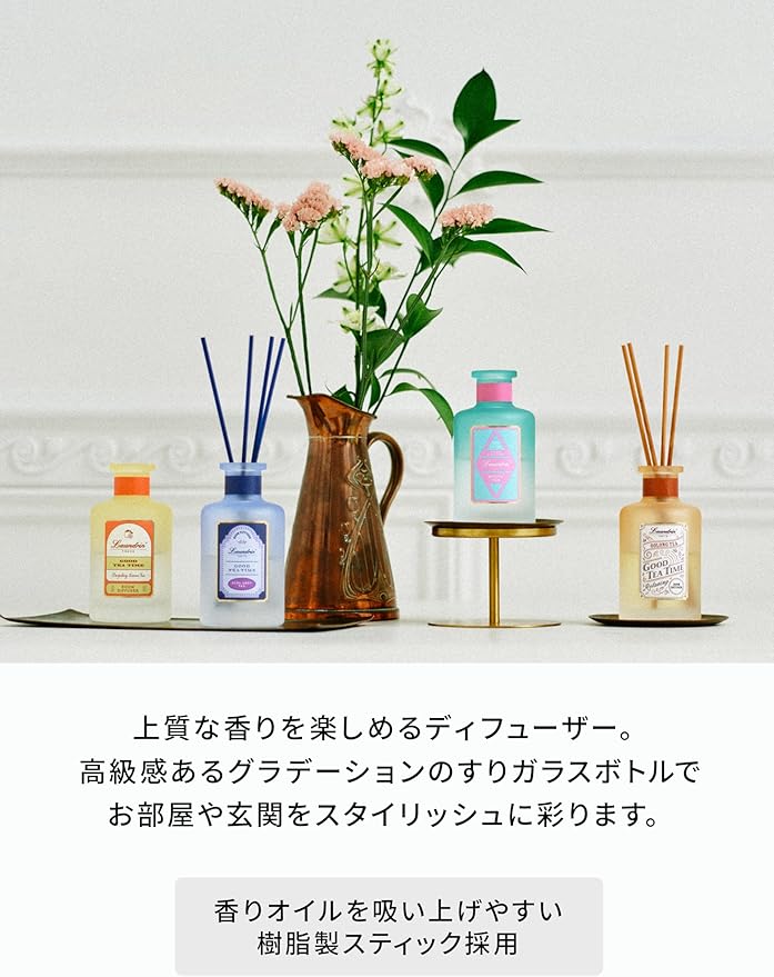 自然で心地よい香り立ちのルームディフューザー。いつもの時間がもっと楽しくなるティーフレグランスシリーズ、ホワイトティーの香り。繊細で上品な清潔感あふれる香りです。