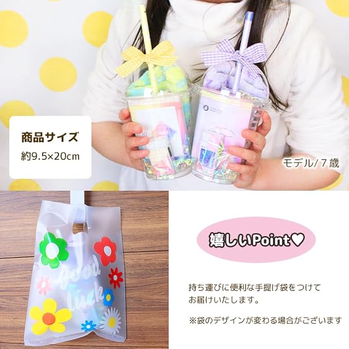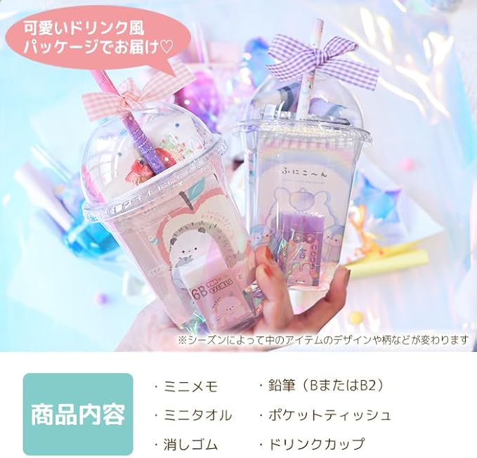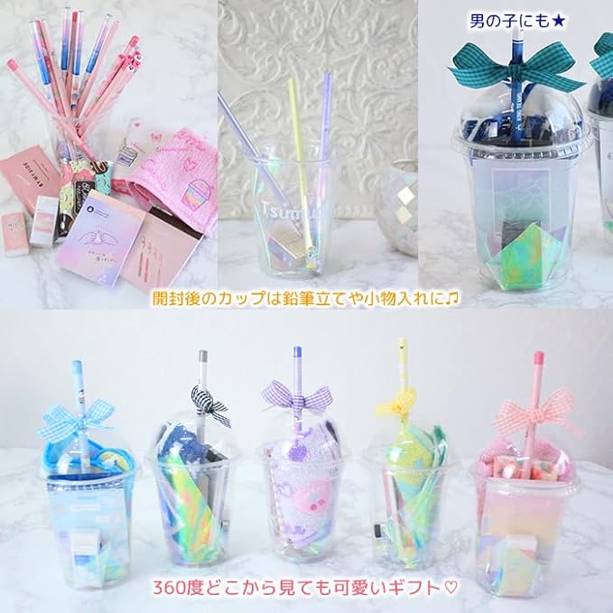 ドリンクカップに文房具が入った可愛らしいギフトです。 ●付属アイテムの色や柄は当店にお任せください。 ●イメージが違うなどの理由で交換などはできませんのでご了承ください。