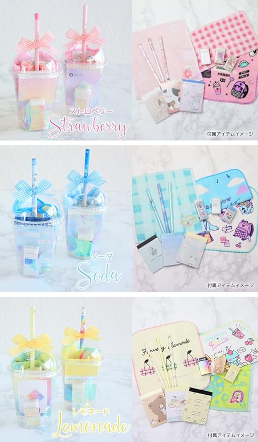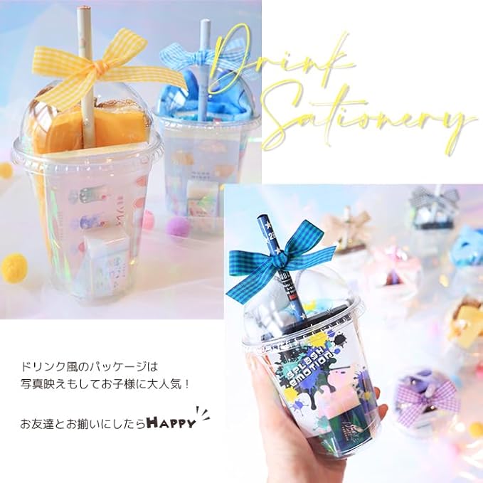 ラッピング付き!子供会やお誕生日プレゼントにピッタリ!可愛いドリンク風文具セットギフト