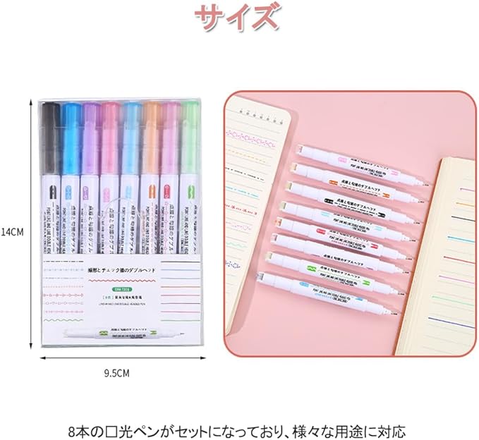 8本セット:8本の荧光ペンがセットになっており、様々な用途に対応。多様なカラーバリエーションで使い分けが可能。