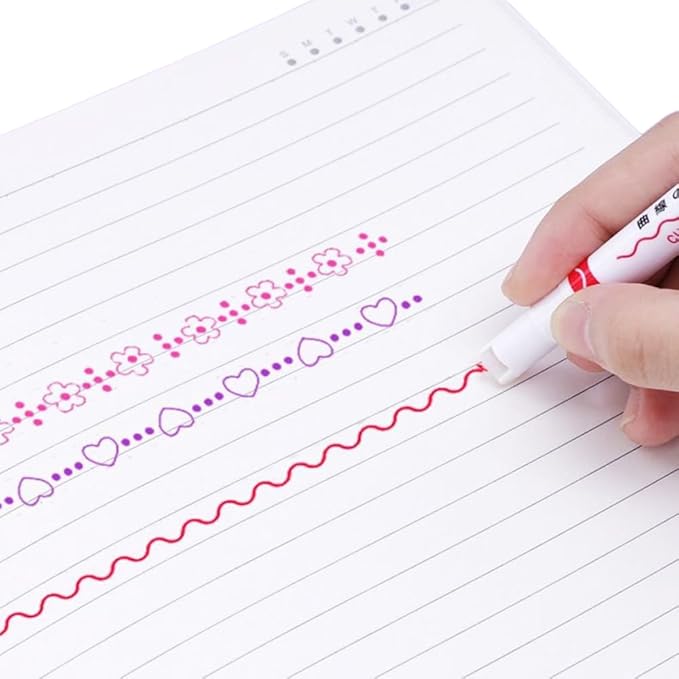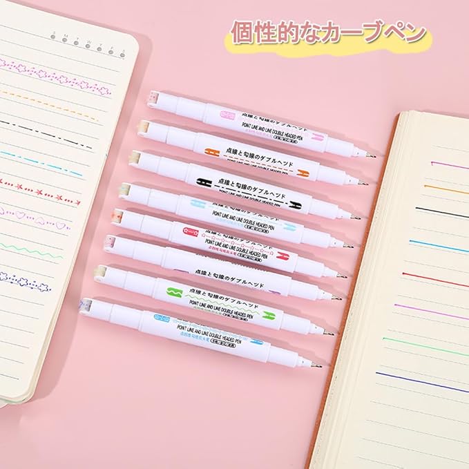 カーブペン 水性ペン 6種類 8色 デュアルチップ カラーペン 蛍光ペンローラースタンプ ハートライン 花模様 波線 お絵かき イラスト オフィス用品 手帳 DIY 手帳 日記 筆記用具 ギフト (8色セット)