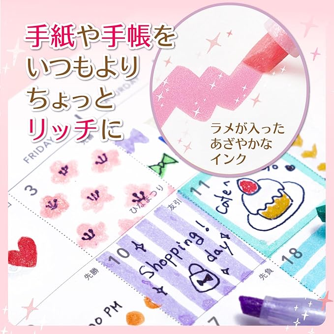 【特長】書いた線がキラキラ輝くラメ入りマーカー