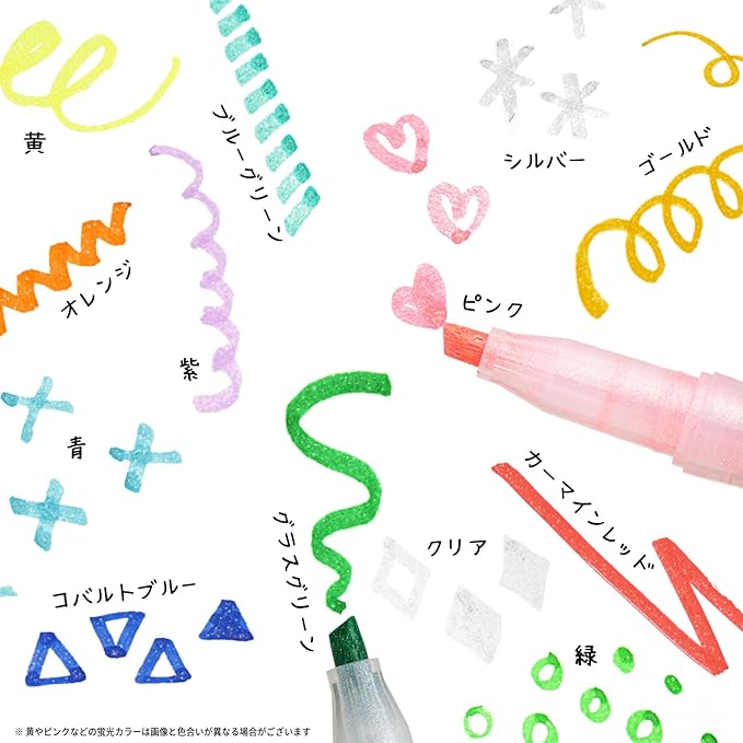 インクの色 ピンク, 黄, 緑, 青, 紫, ゴールド, シルバー, クリア, コバルトブルー, ブルーグリーン, グラスグリーン, オレンジ, カーマインレッド