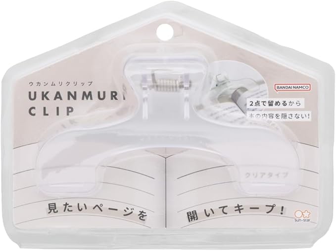見たいページを開いてキープ!「ウカンムリクリップ」。 イメージカラーは、ウォータリークリア。 書籍の内容を隠さないクリアタイプ。