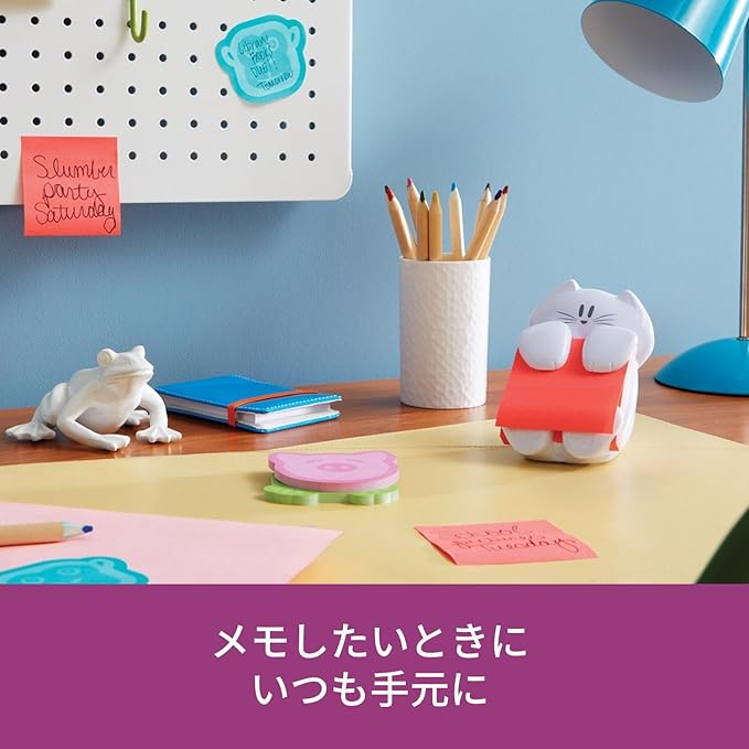 【日本初登場】見ているだけで癒される! かわいいネコ型ふせんディスペンサーが日本初登場。存在感と話題性たっぷりのデザインで、ギフトにもぴったり。片手でサッと簡単に、一枚ずつ取り出せる、ポップアップ式。最後の一枚までムダなく使える。電話やパソコン操作中などの、メモやメッセージにとっても便利。