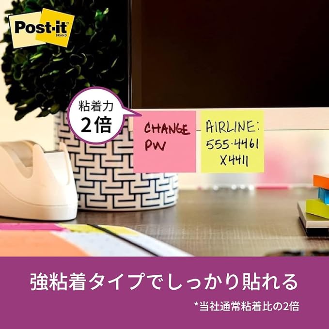 ディスペンサーにセットして使うポストイット ノートだから、いつも机の定位置に。使いたい時に「粘着メモがない」なんて事もこれで解消!