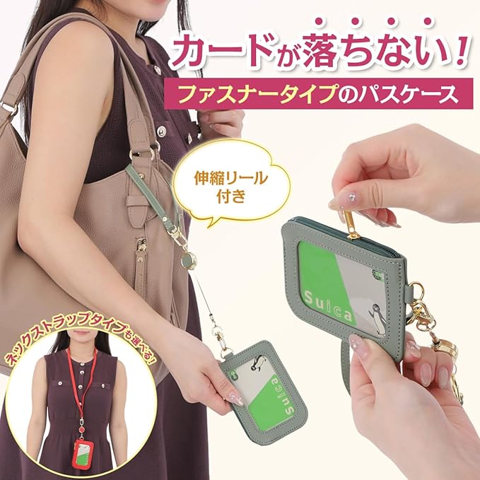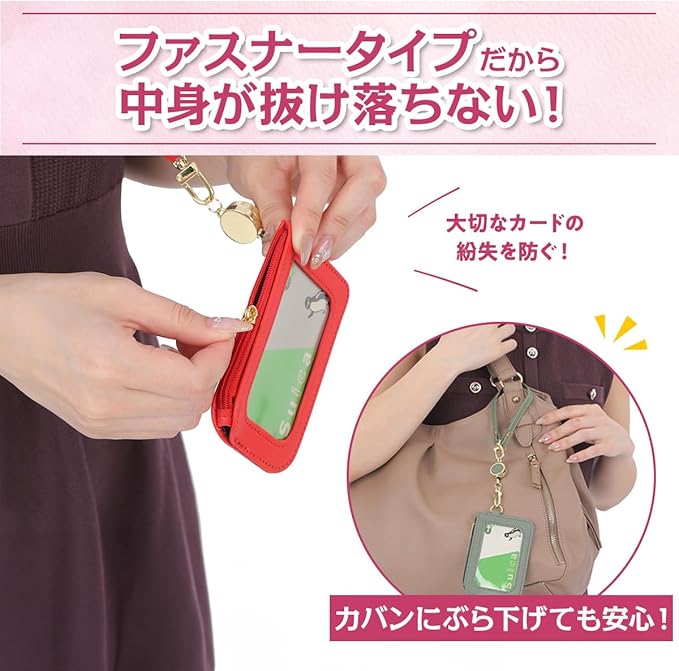 [UPALL] パスケース 子供 落ちない リール付き 定期入れ なくさないパスケース スイカケース メンズ レディース (ハンドストラップ, レッド)