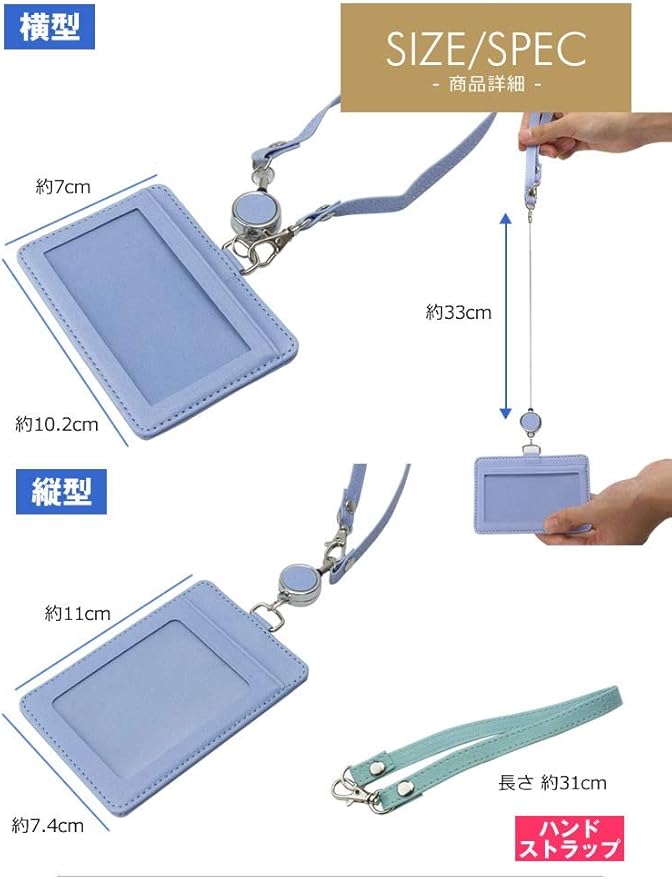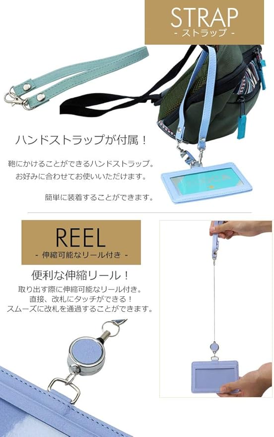 [KOYOKOMA] パスケース 定期入れ 伸縮可能 ケース カードケース 改札タッチ 鞄付け ハンドストラップ付き リール付き 社員証 通勤 通学 鞄 (ミントグリーン/縦型)