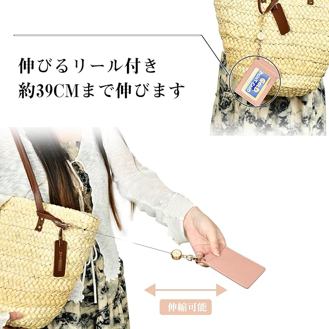 カードホルダー 縦型 パスケース レディース メンズ パスケース リール付き 定期入れ 両面収納かわいいリールナスカン付き 取り外し簡単 カード収納 通カード 通勤 通学 多機能-アプリコットS