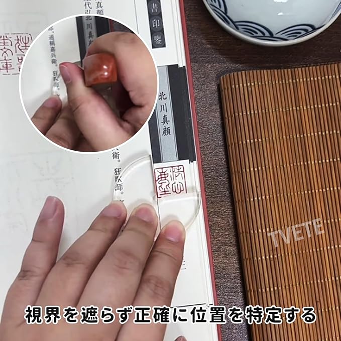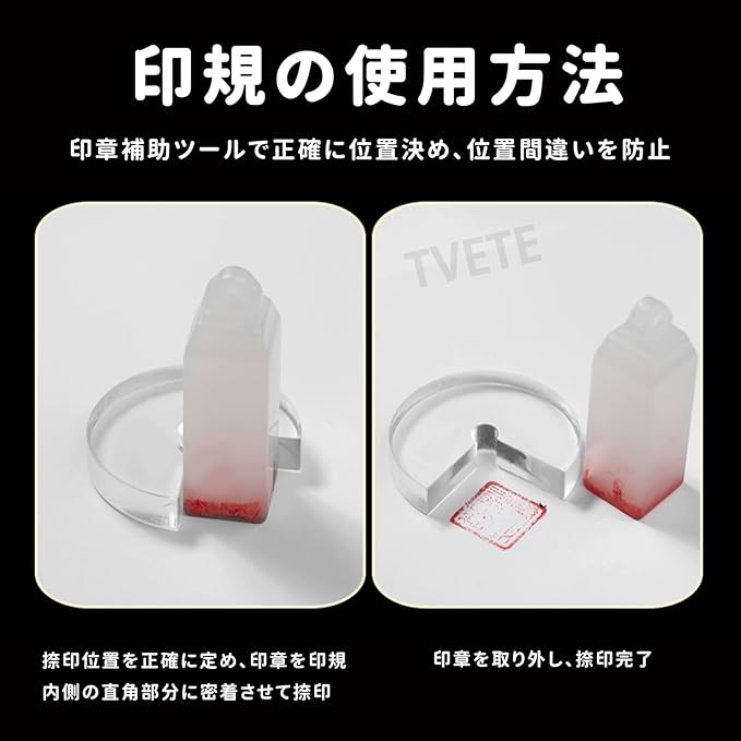 【クリアな視認性と正確な位置決め】:透明度の高いアクリル製で、シールと紙の位置がはっきりと確認でき、スタンプの精度が向上します。スタンプ専用に設計された溝がシールをしっかりと固定し、毎回正確な位置合わせを実現。位置ずれや重複押印を防ぎます。