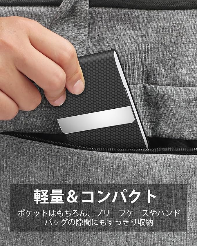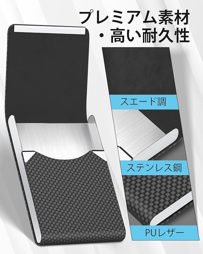 [MaxGear] 名刺入れ 取り出しやすい 名刺ケース 薄型 メンズ名刺入れ PUレザー カードホルダー マグネット式 1秒開閉 ビジネス用 RFIDブロッキング 男女兼用 カーボン
