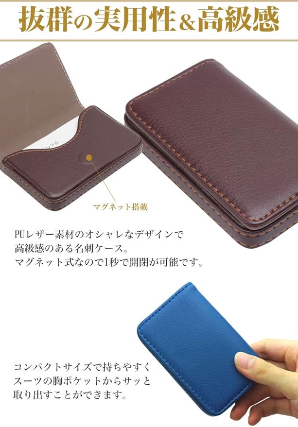 1秒で開閉が可能なマグネット式でスムーズに取り出せ、スマートに名刺の交換ができます。