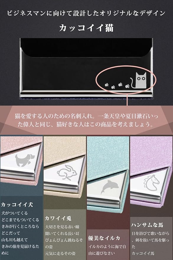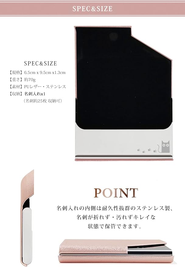 名刺入れ 角が折れない 名刺ケース 猫 柄 マグネット式 1秒開閉 レディース メンズ ビジネス (桜色)