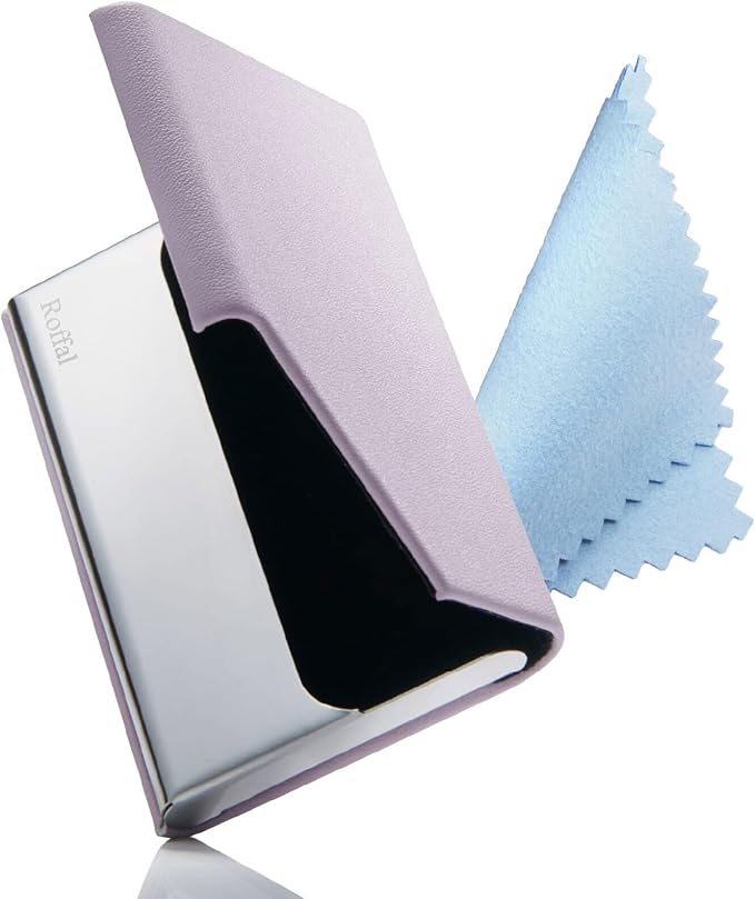 [Roffal] 角が折れない名刺入れ【名刺が折れないステンレス仕様】 25枚収納 名刺入れ レディース 【おしゃれなツートンカラー】 名刺ケース 大容量 PUレザー 鏡代わりになるステンレス仕様 マグネット式 カードケース 仕切りカード 専用クロス ギフト 就職祝い 化粧箱付 新社会人 プレゼント (合皮, パープル)