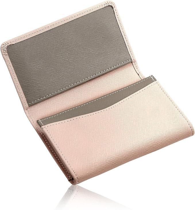 [honey&blue] 名刺入れ レディース 本革 【マグネット付しっかり閉まる】 薄型 大容量 (50枚収納)汚れに強い おしゃれなバイカラー 名刺ケース 名刺ホルダー カードケース (グレイッシュピンク)