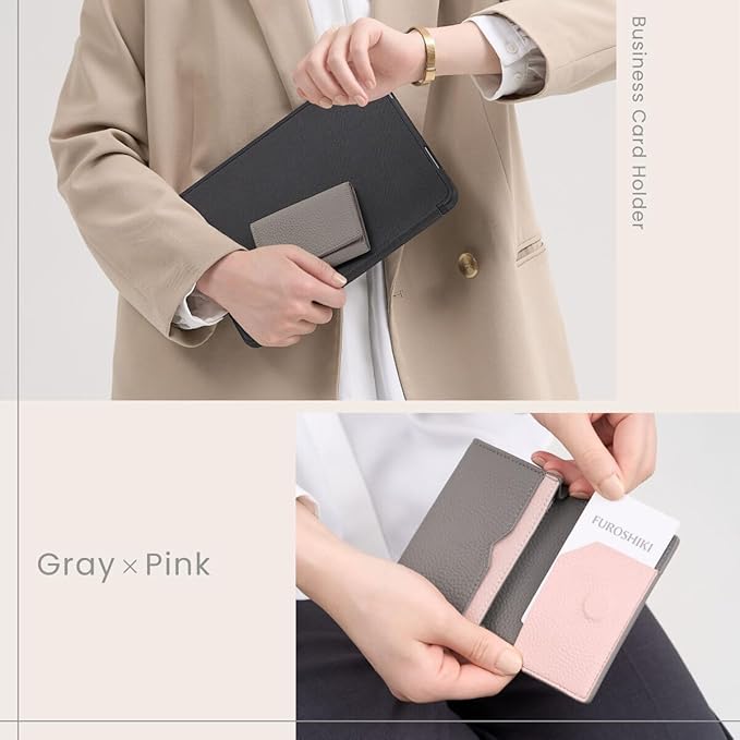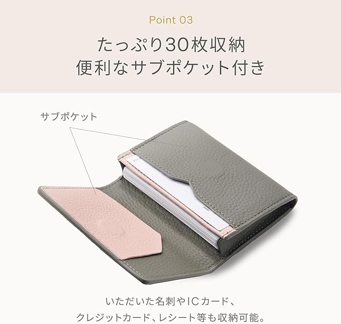 [NEESE] 【開けるたびにときめく名刺入れ】名刺入れ レディース 本革 バイカラー 30枚大容量 名刺ケース 【 日本限定商品保証付 】 (f. グレー ピンク)