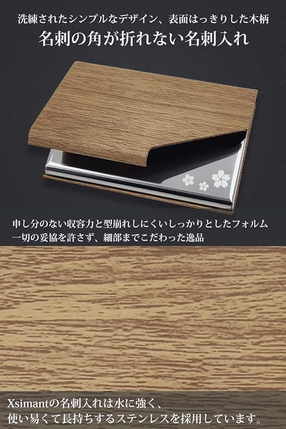 [Xsimant] 名刺入れ 桜 木柄 角が折れない 名刺ケース 男女兼用 マグネット式 1秒開閉 ビジネス (ベージュ)