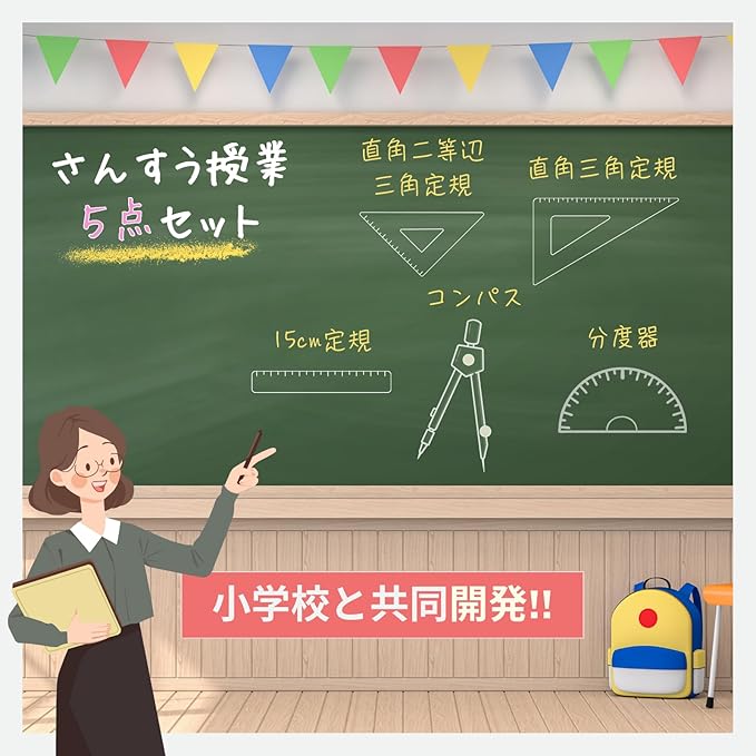 ✏️【算数で使える5点セット】コンパス・分度器・直角二等辺三角定規・直角三角定規・15cm定規