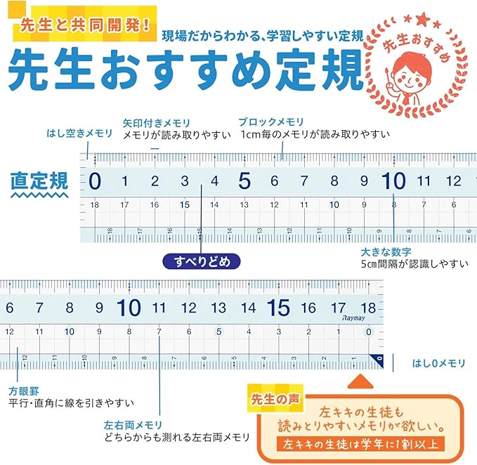 【学校の先生と共同開発!現場の先生だからわかる、学習しやすい定規シリーズ】