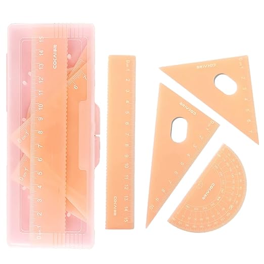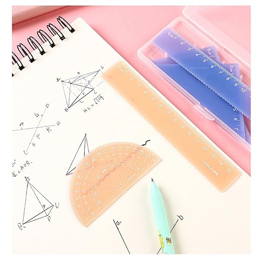 ゼリー色 4点セット オレンジ 学生用数学幾何学定規セット 透明 三角定規用 直線定規 分度器 小学校向け 学生用定規セット 分度器付き 三角定規 数学定規 製図用定規 測定ツール と明確な尺度 家庭用 学校用
