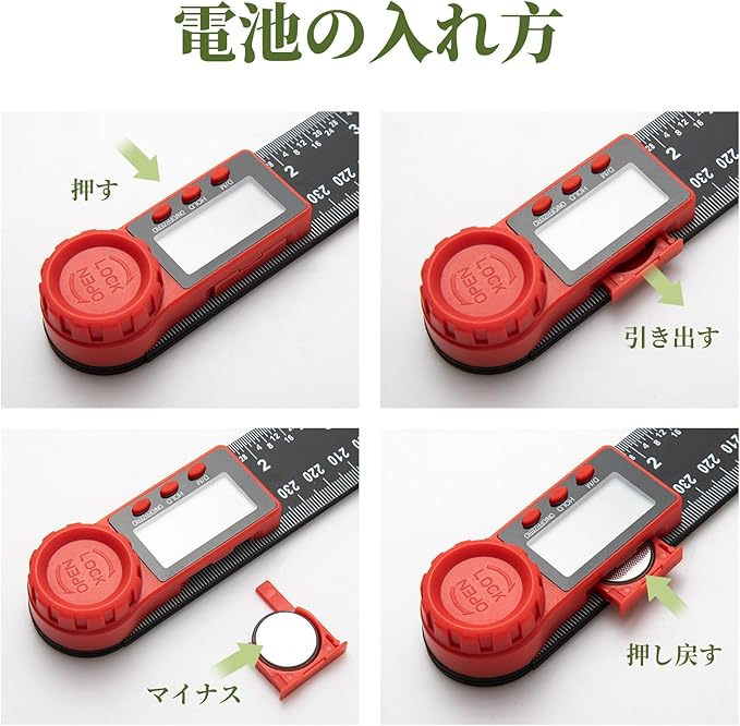 デジタル 角度計 分度器 200mm LCD液晶画面 アングルメーター 角度ゲージ 0-360 測定範囲 ABS製 角度測定 長さ測定 軽量小型 瞬読 黒色 日本語取説付き