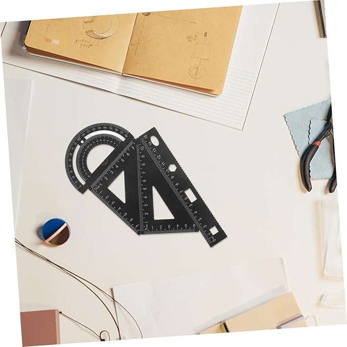 FOMIYES 1 セット 幾何学 セット メタル 分度器 メタル セット 正方形 三角形 定規 製図 三角形 製図 定規 For 建築 学生 黒