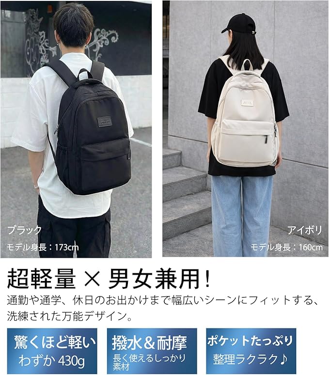 [HiT COLLECTION] リュック バックパック レディース 20L 通学 リュック 女子 防水 軽量 15.6インチPC収納 大容量 かわいい カジュアル ビジネス 男女兼用 メンズ 通勤 旅行