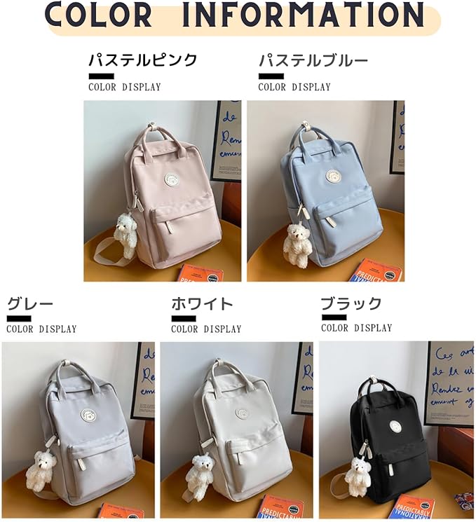 [YasYouRi] レディース リュック パステルカラー タブレット PC 軽量 かわいい 撥水 スクールバッグ タウンリュック キッズ 女性 高校生 女子 通学 旅行 韓国 チャーム付き