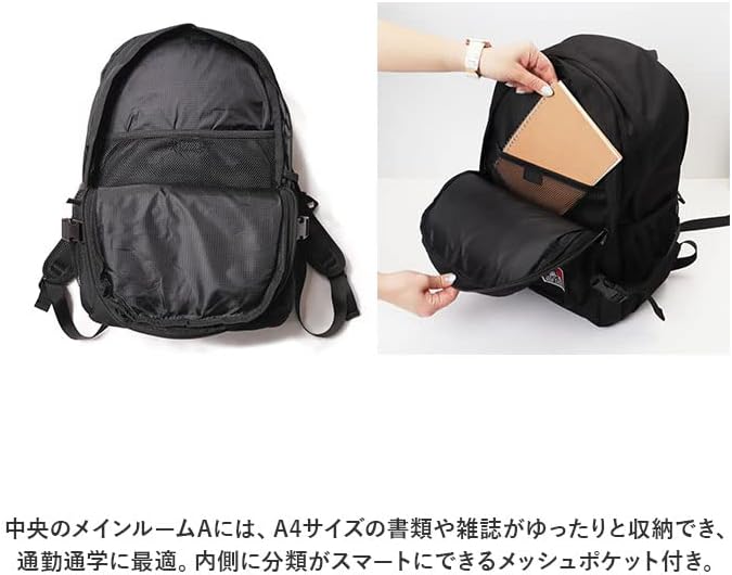 普段使いはもちろん、タウンユースからレジャーシーンまで活躍する機能的なデイパック。高い収納力を備え、荷物が多い日の移動も楽々! さらに、背中や肩に触れる部分にはメッシュ素材を使用し、通気性に優れ蒸れを軽減してくれます。メインルームはB4サイズ対応で、フロントの広々としたポケットにより荷物の仕分け収納が可能なデザイン。内装にはクッション性に優れたPC収納部を装備しており、デバイスにもばっちり対応! 外側には大小様々なポケットを設け、細かくアイテム管理できるデザインに仕上がっています。