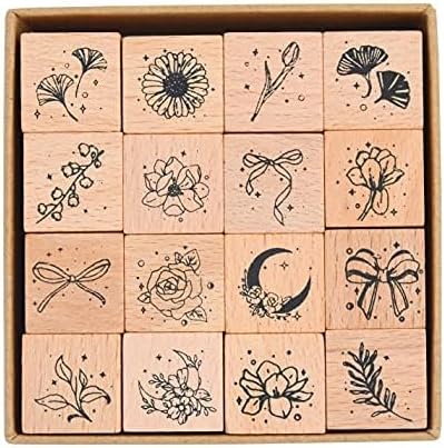 MissOrange『木製ゴム印セット』月 花 葉 ちょう結び クリエイティブスタンプセット クラフトカード スクラップブッキング 手帳用 16個セットM-26 (2-Bowknot Flower)