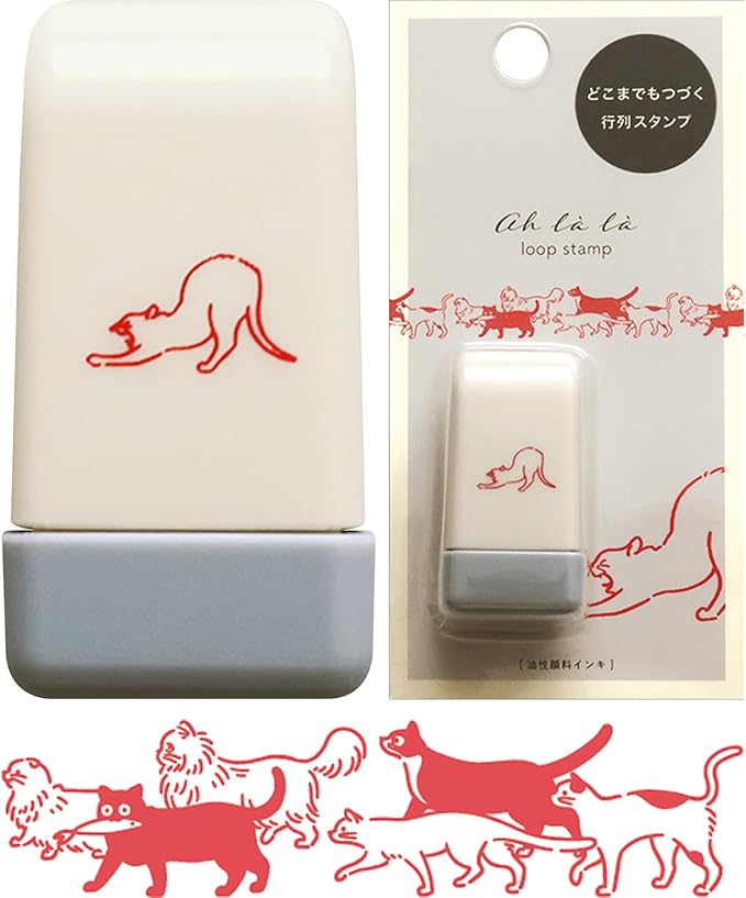 コロコロとどこまでも行列を延ばせるループスタンプ。手帳やノートに押して、まっさらなページを賑やかにしてみませんか。油性顔料インキのため上から色を塗ってもにじみません。