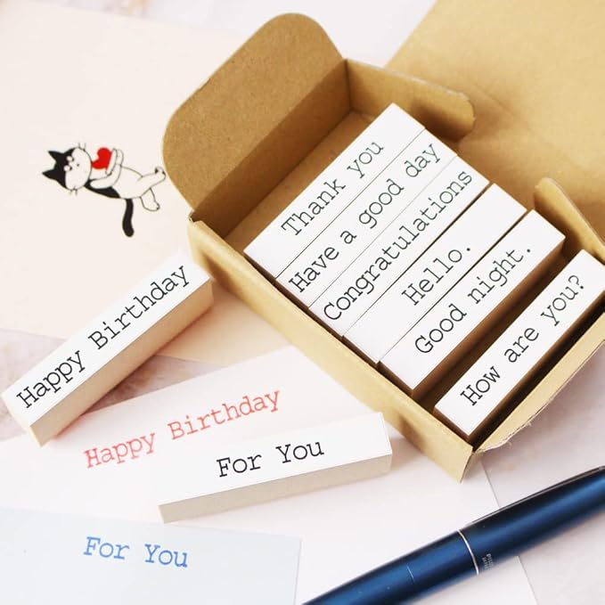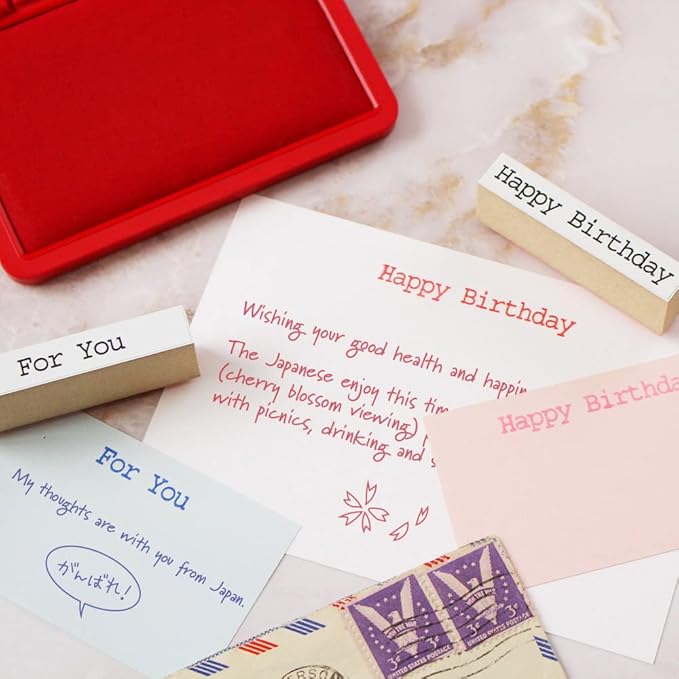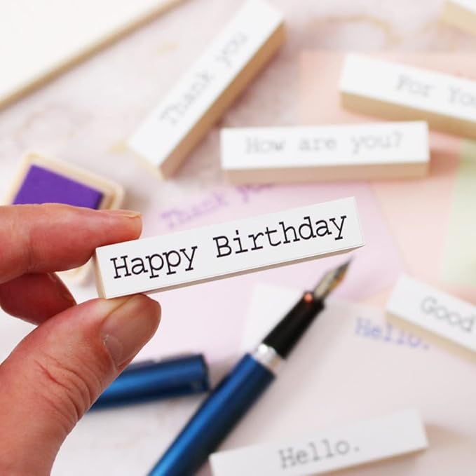 スタンプ かわいい おしゃれ バースデー サンキュー カード ブライダル 誕生日 手紙 はんこ 木製 ゴム印 セット プレゼント 日本製 (#75)