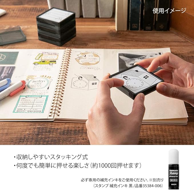 お気に入りのノートや付せんに書いた、記録やメッセージを楽しくデコレーション!何度でも簡単に楽しく押せます。