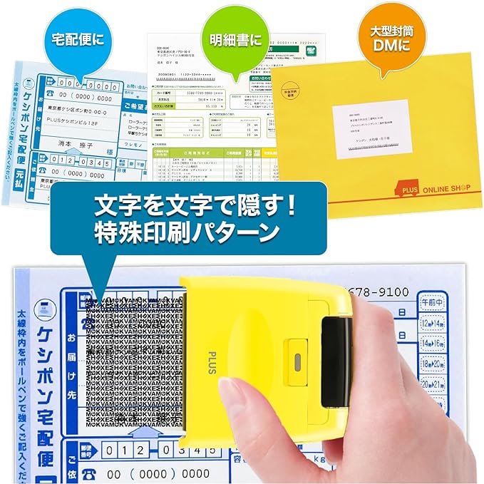 大切な個人情報を保護するスタンプ、宅配伝票や明細など幅広い範囲に便利な「ローラーケシポン ワイド」